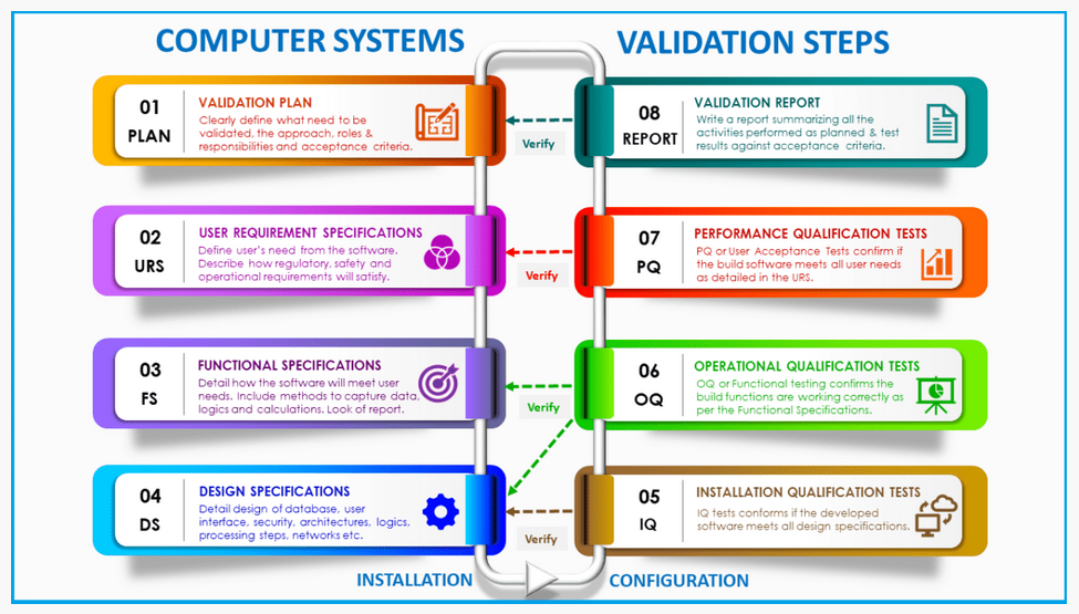 Computer System Validation (CSV) is a compliance requirement for all computerized systems operating in regulated environments. These systems must be validated to align with regulatory standards such as the U.S. FDA’s predicate rules (21 CFR Parts 210/211), EU GMP Annex 11 for computerized systems, and 21 CFR Part 11 for electronic records and signatures. The CSV process is guided by the GAMP® 5 risk-based approach and the V-model methodology. Validation must also confirm that the system is suitable for its intended use, including its architecture, operational environment, and scientific workflows or methods, to ensure regulatory compliance.