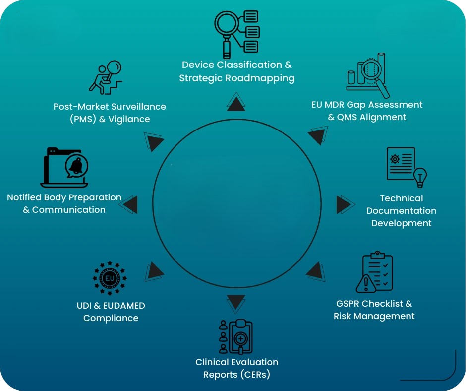 Our gap assessments benchmark your current documentation and systems against the MDR’s General Safety and Performance Requirements (GSPRs), identifying areas of non-compliance. We align your ISO 13485 quality system with MDR-specific processes, recommend updates to standard operating procedures and forms, and ensure your QMS integrates essential elements like PMS, PMCF, and vigilance procedures.